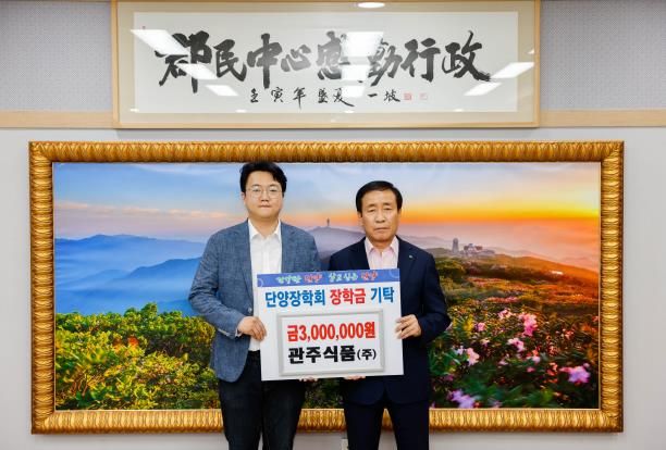(아름다운교육신문) 관주식품(주)은 지난 20일 단양장학회에 장학금 300만 원을 기탁했다.