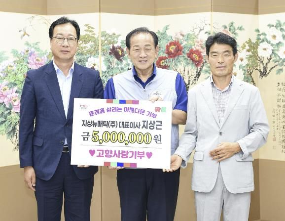 (아름다운교육신문) 문경시는 8월 20일, 지상뉴매틱(주)의 지상근 대표이사가 고향사랑기부금 최고액인 500만 원을 기탁했다고 밝혔다.