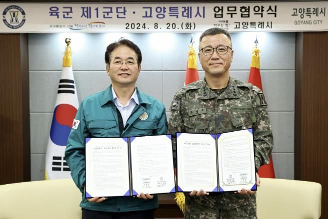 (아름다운교육신문) 고양특례시는‘2024 을지연습’기간을 맞아 지난 20일 1군단을 방문해 대화동 예비군훈련장 과학화사업 및 향후 부대이전을 위한 합의각서를 체결했다고 밝혔다.