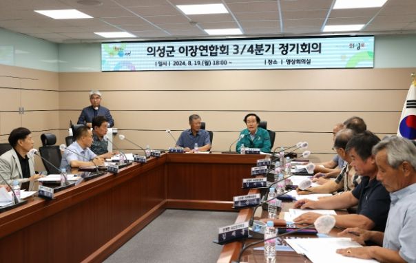 (아름다운교육신문) 의성군은 지난 19일 오후 군청 영상회의실에서 열린 이장연합회 정기회의에 참석해 최일선의 현장에서 활약하고 있는 읍면 이장협의회장들과 만남의 자리를 가졌다.