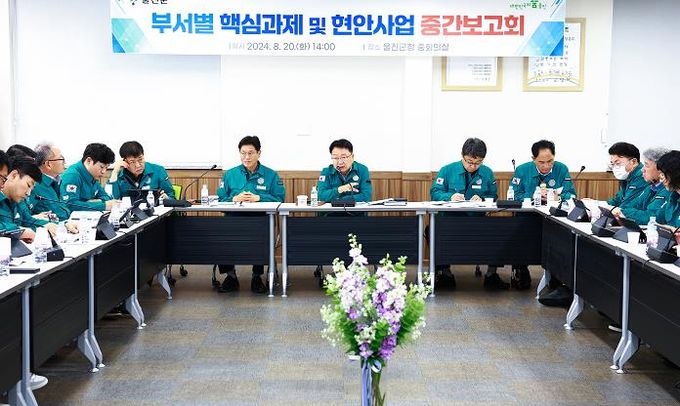 (아름다운교육신문) 울진군은 8월 20일 군청 중회의실에서 '부서별 핵심과제 및 현안사업 중간보고회'를 개최했다.