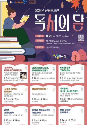 마지막으로 신용도서관에서는 ▲‘로켓 아이’ 저자 김민우 작가와의 만남 ▲아이와 함께 만드는 그림책 큐브 ▲추석맞이 연 만들기 등 10개 프로그램이 열린다.