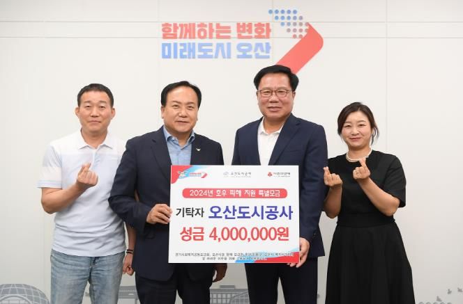 이권재 시장은 “전달해 주신 성금은 호우피해 지역과 주민들이 하루빨리 일상을 회복할 수 있도록 잘 전달하겠다.”며, “평소 지역내 사회적약자를 위해 앞장서는 오산도시공사 임직원분들께 감사의 마음을 전한다.”고 말했다.