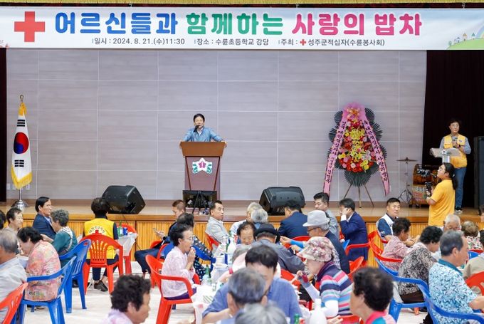 (아름다운교육신문) 대한적십자 성주군지구협의회는 8월 21일 수륜초등학교층에서 지역 어르신 250명을 모시고 ‘사랑을 나누는 밥차’로 따뜻한 온기를 전했다.