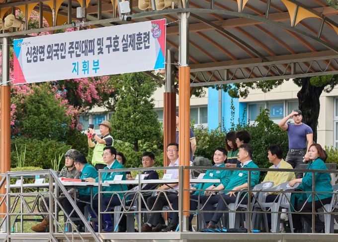 또 자율방재단, 자율방범대, 의용소방대, 적십자회 등 유관단체와 신창면 이장협의회, 신창면 외국인기관단체협의회 6개의 민간단체가 대피 활동을 지원하는 형식으로 진행했다.