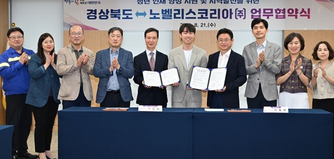 (아름다운교육신문) 경상북도는 21일 경북도청에서 경상북도와 노벨리스코리아㈜ 간‘청년 인재 양성 및 지역 발전을 위한 업무협약(MOU)’을 체결했다.