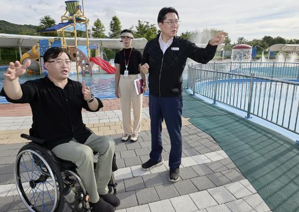 (아름다운교육신문) 박경귀 아산시장이 지난 21일 신정호 아트밸리 물놀이장에서 열리는 ‘아트밸리아산 제2회 장애인 한바탕 물놀이 축제’ 현장 점검에 나섰다.