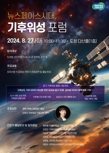 경기도민이라면 누구나 참여 가능한 기후위성 포럼은 과학 커뮤니케이터인 궤도의 ‘인공위성이 주는 현재와 미래’라는 주제로 강연을 시작으로 전문가 패널토론이 진행된다.