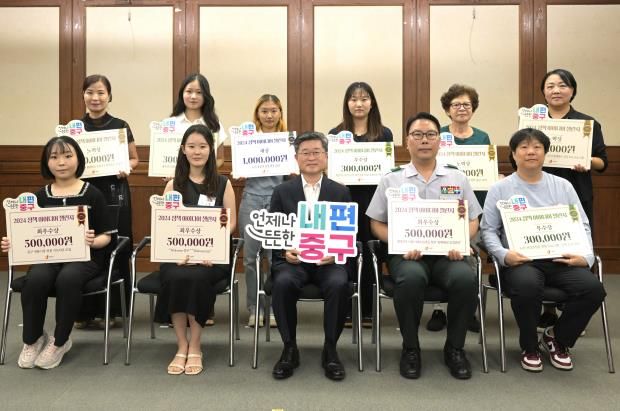 최우수상은 하승희 씨의 'Welcome 중구, Welcome kit' 제안이 선정됐다. 중구로 전입하는 1인가구에게 생활정보를 안내하고 웰컴키트를 제공해 적응을 돕자는 내용이다. 김동현 씨의 '병역의무 이행 사회초년생을 위한 함께해요! 입영준비', 권지영 씨의 '중구 전통시장 전용 기프티콘 도입'도 최우수상으로 함께 선정됐다.
