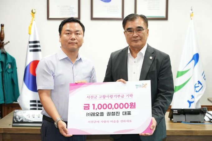(아름다운교육신문) 논산시에 소재한 ㈜레오플 권철진 대표가 지난 21일 서천군을 찾아 고향사랑기부금 100만원을 기탁했다.
