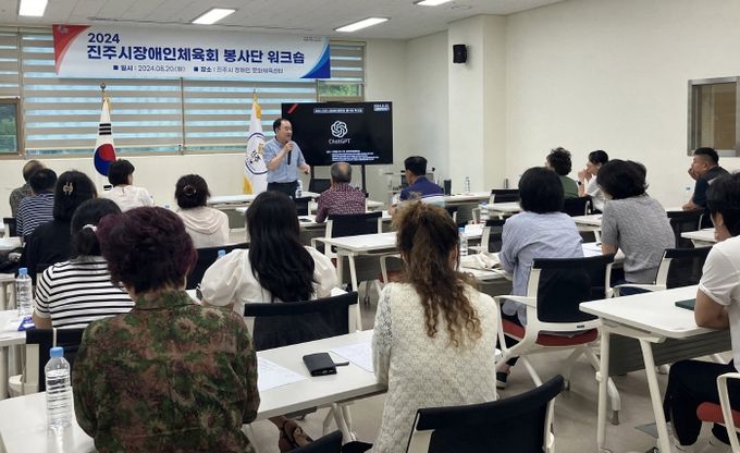 이번 워크숍은 봉사단원들의 역량 강화와 장애인체육에 대한 이해를 높이기 위해 기획됐으며, 장애 인식 개선 강연회, 챗GPT 교육, 장애인스포츠 체험 순으로 진행됐다.