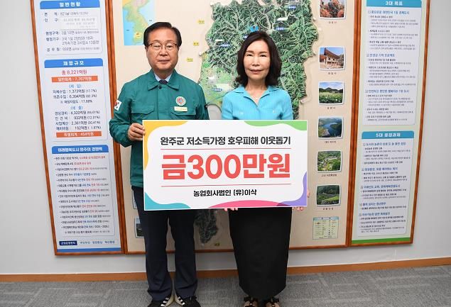 (아름다운교육신문) 농업회사법인(유)이삭이 완주군에 수해 주민들을 돕기 위해 성금 300만 원을 기부했다.