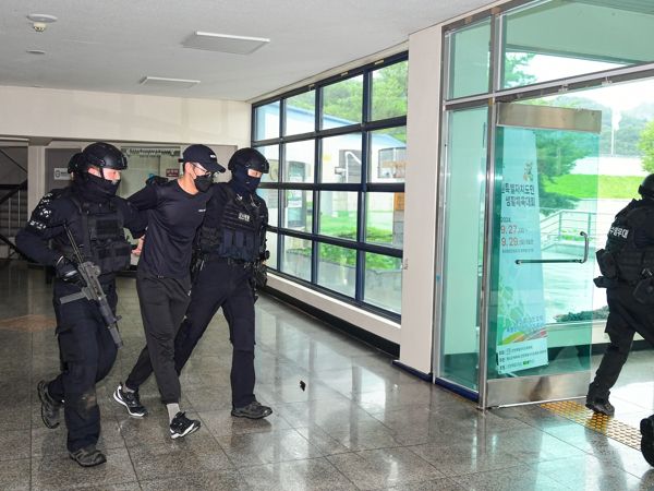 (아름다운교육신문) 횡성군은 관계기관 합동으로 2024년 을지연습기간인 21일 오후 2시 횡성종합운동장 실내체육관에서 대테러대응 실제훈련을 실시했다.