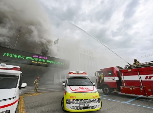 관계기관 300여 명이 참가한 이번 훈련은 ‘무인항공기(드론)와 적 특수전부대의 영덕군청 테러’라는 가상의 시나리오를 바탕으로 테러 상황 발생, 민원인 대피, 자위소방대 초기 대응, 문서반출, 직원 대피, 군·경 테러 진압, 소방 화재 진압 및 인명 구조, 시설복구의 단계로 진행됐다.