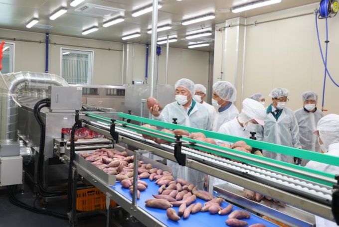 센터의 가공라인은 군고구마 페이스트 생산과 IQF(개별급속냉동) 시설로 구성되어 있으며 고구마 껍질 제거와 심 분리, 포장 등을 자동으로 대량 생산할 수 있다.