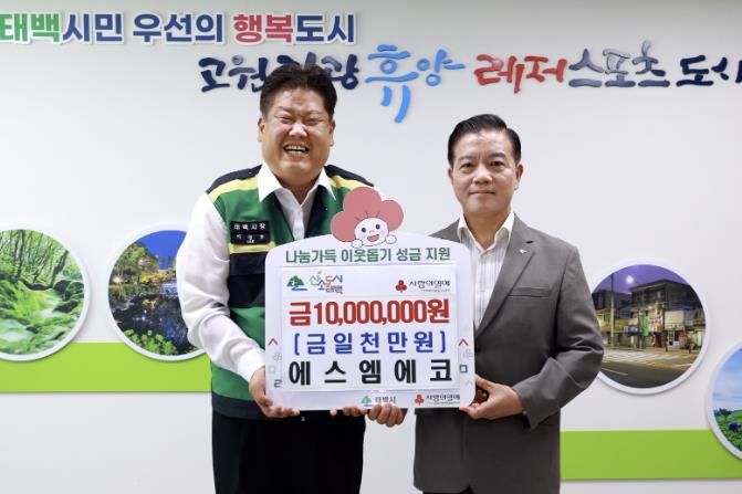 한편, 사회적기업 에스엠에코는 1987년 개소한 환경업체로, 매년 태백시를 위해 향토장학금과 이웃돕기 성금 등 꾸준히 사회공헌활동에 힘써오고 있다.