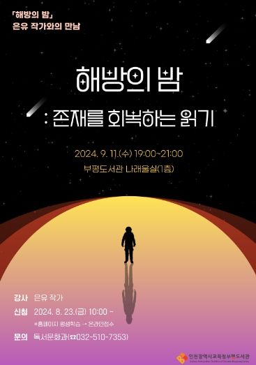 (아름다운교육신문) 인천광역시교육청부평도서관은 9월 독서의 달을 맞아 ‘해방의 밤’ 저자 은유 작가와의 만남을 9월 11일 오후 7시에 개최한다.