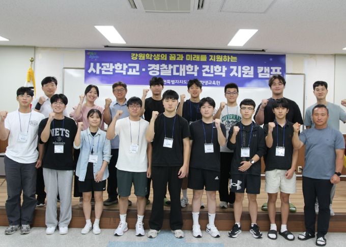 강원특별자치도교육청학생교육원은 도내 학생들의 사관학교 진학을 지원하기 위해 지난 1월 3주간의 1차 캠프, 5월 1주간의 2차 캠프를 운영한 바 있으며, 학교별 특수목적형(사관학교) 1:1 상시 지도를 4월부터 20주 운영해 오고 있다.