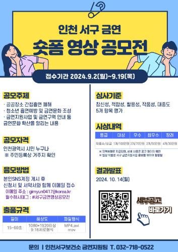 인천서구 금연 숏폼 영상 공모전은 서구보건소 금연지원팀이 주최하는 행사로 인천지역주민 누구나 참여 가능하다.