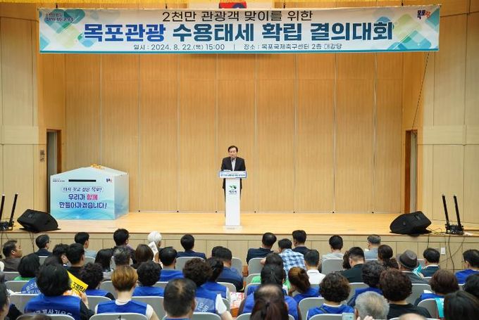 시는 변화하는 관광트렌드와 관광객 수요, 외국인 단체관광 등에 대응하고 하반기 주요 행사‧축제에 다녀갈 관광객의 만족도를 높이기 위해 지난 22일 목포국제축구센터에서 관광수용태세 확립 결의대회를 가졌다.
