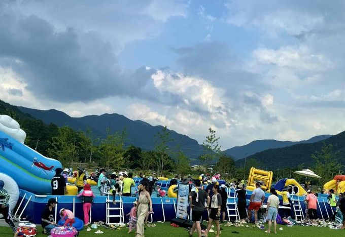 밀양시는 폭염 속 물놀이장을 찾은 이용객들이 더위를 피해 편하게 물놀이를 즐길 수 있도록 조립식 풀장, 에어 풀장, 워터슬라이드 등 다양한 물놀이 시설과 그늘막 쉼터를 함께 설치했다.