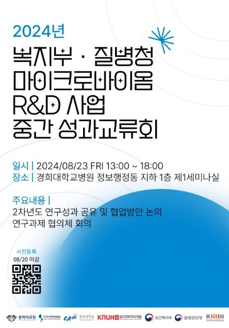 (아름다운교육신문) 질병관리청 국립보건연구원은 2024년 8월 23일, 경희대학교병원에서 2024년 질병청-복지부 인체 마이크로바이옴 연구개발(R&D)사업 중간 성과교류회를 개최한다고 밝혔다.