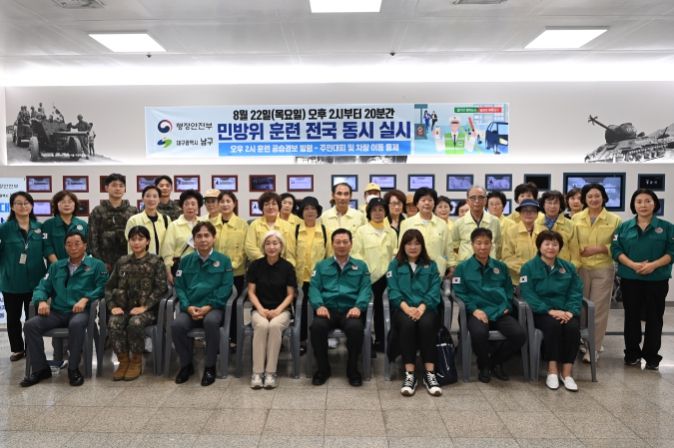 조재구 남구청장은 “북한의 위협이 증대되는 현재 시점에서 이번 민방위 훈련을 통하여 비상 대비 태세 역량을 강화에 좋은 계기가 됐으며, 훈련에 적극적으로 참여해주신 주민들에게 감사드린다”라고 밝혔다.