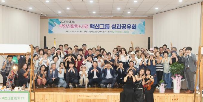 이날 공유회에는 권익현 부안군수와 이양수 추진단장을 비롯한 중간지원조직 및 1·2·3기 액션그룹 등 150여 명이 참석하여 각 액션그룹 성과발표, 축하공연, 액션그룹 플리마켓 등을 진행했다.