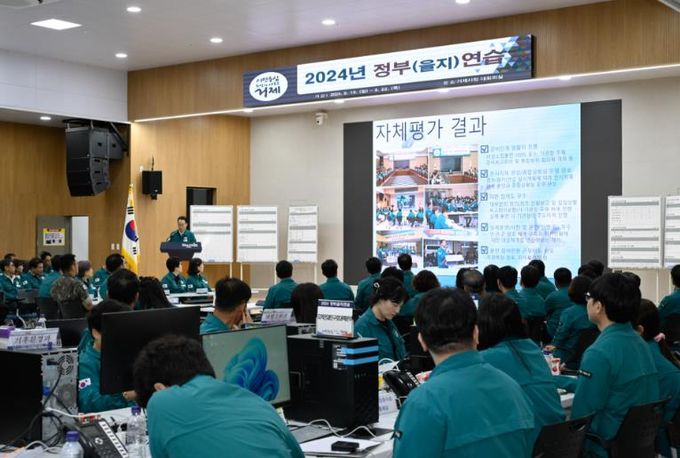 거제시장을 비롯한 국․소장 및 부서장과 을지연습 근무자, 제8358부대 1대대, 경찰서, 소방서, 해양경찰서, 거제해양관광개발공사 등 160여명이 참석한 가운데 열린 강평회는 지난 19일부터 22일까지 실시된 2024년 정부(을지)연습을 성공적으로 마무리하고 내년도 정부(을지)연습에 대비해 기관별 후속 조치 계획을 확인․점검하는 자리로 마련됐다.