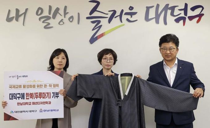 대덕구는 23일 한남대 패션디자인학과로부터 두루마기 한복을 전달받았다고 밝혔다.