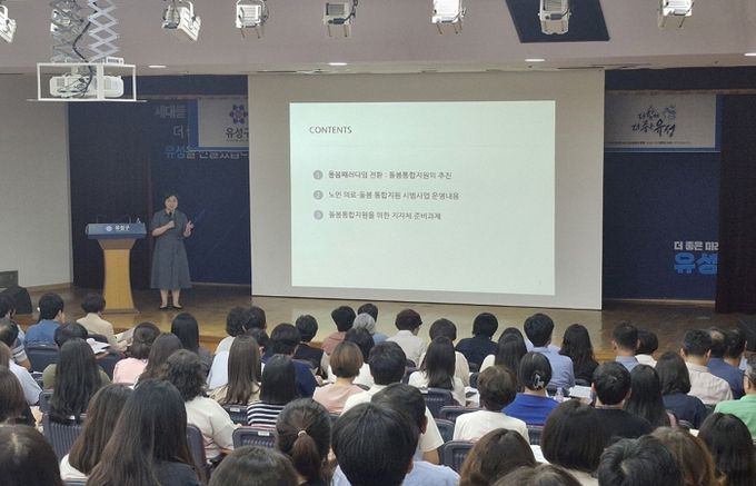 (아름다운교육신문) 대전 유성구는 지난 23일 구청 대강당에서 공무원 180여명을 대상으로 “통합돌봄 직원특강”을 실시했다.