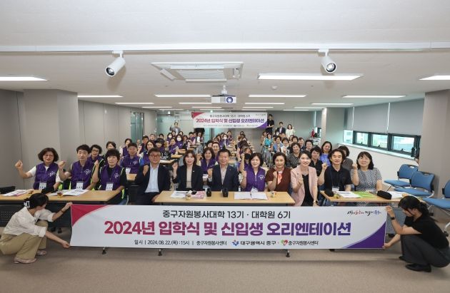 (아름다운교육신문) 대구 중구는 22일 중구자원봉사센터 대강당에서 대학 44명, 대학원 21명을 대상으로 ‘제13기 중구자원봉사대학 및 제6기 중구자원봉사대학원’ 입학식을 가졌다.