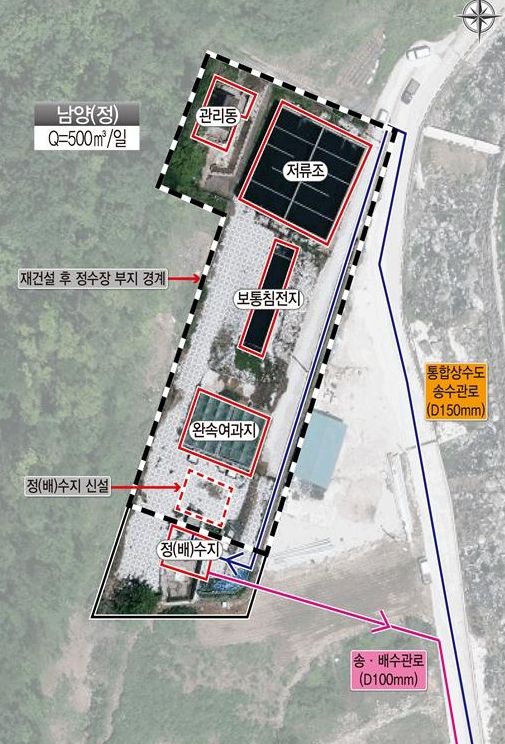 2024년부터 5년간 118억 원을 투입해 남양정수장을 전면 재건설(Q=500㎥/일)하여 늘어나는 급수 수요량에 대비하고 안정적인 정수처리시설 운영으로 지역주민 및 관광객에게 맑고 깨끗한 수돗물을 공급할 계획이다.