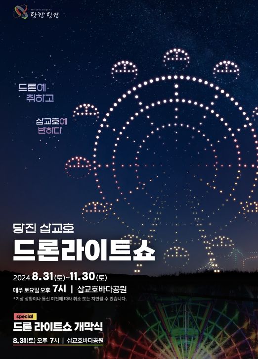 오성환 시장은 “지난 5월 14일 드론쇼의 성원에 힘입어 중부권 최초 상설 드론 라이트 쇼를 개최한다”라며, “삽교호 밤하늘에 드론 별빛을 수놓아 체류형 관광객 유입을 촉진하고, 지역 경제 활성화의 원동력으로 삼을 것”이라고 밝혔다.