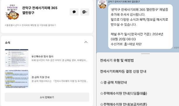 또한 구는 전세사기 피해자의 대부분이 청년과 신혼부부인 점을 고려하여 카카오톡 채널에도 전세사기피해 365 열린창구를 개설하였다.