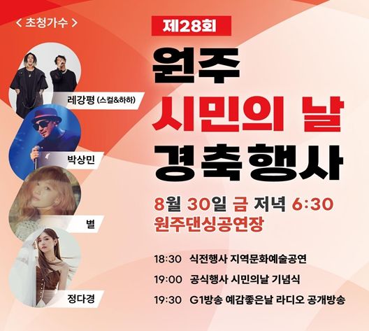 (아름다운교육신문) 원주시는 오는 30일 오후 6시 30분부터 원주댄싱공연장에서 ‘제28회 원주시민의 날’ 경축행사를 개최한다.
