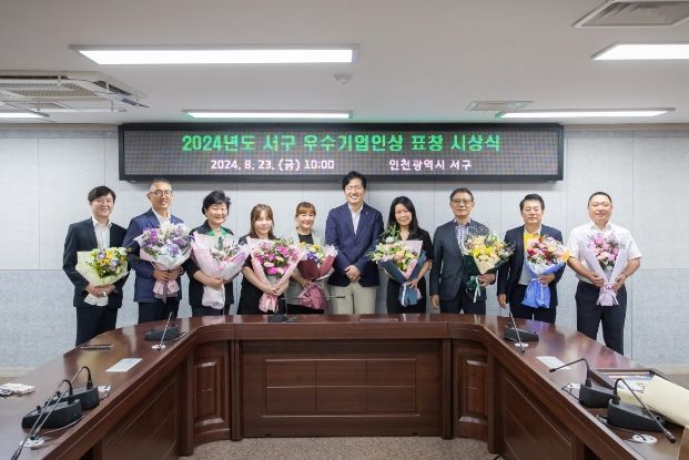 (아름다운교육신문) 인천 서구가 23일 지역경제 활성화에 기여한 모범기업체 대표의 사기 진작을 위하여 2024년도 서구 우수기업인상 표창장을 수여했다.