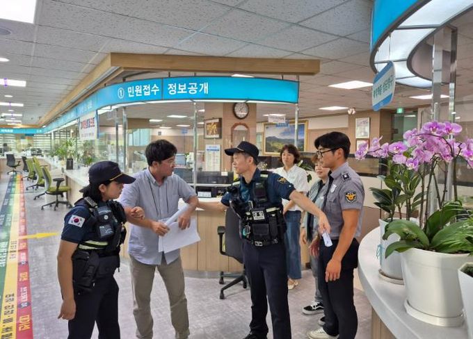 이번 훈련은 ▶민원발생 ▶민원인 폭언 발생 ▶ 폭언지속에 따른 민원인 진정 및 제지 ▶ 비상벨 작동 및 경찰 출동 ▶피해 공무원 보호 조치 ▶ 다른 민원인 대피 ▶ 가해 민원인 경찰 인계 순으로 진행됐다.
