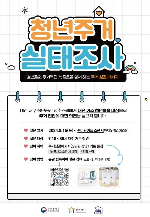 설문조사에 참여한 청년 200명에게는 생활에 유용한 물품들로 구성된 주거성공패키지 키트가 선착순으로 제공된다.