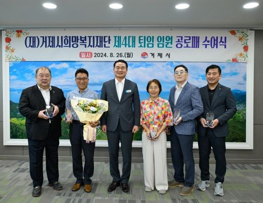 (아름다운교육신문) 거제시는 지난 26일 거제시희망복지재단 제4대 퇴임 임원 김원배 이사장과 이사 6명에 대한 공로패 수여식을 개최했다.