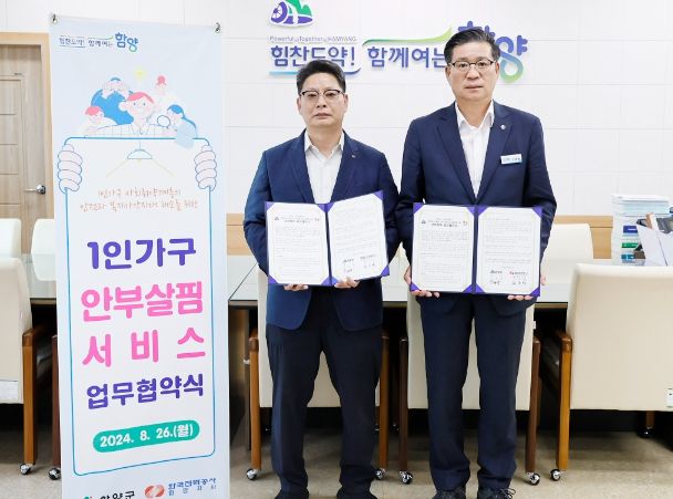 (아름다운교육신문) 함양군과 한국전력공사 함양지사(지사장 김승한)는 26일 함양군청에서 고독사 예방 및 사회안전망 강화를 위한 ‘1인 가구 안부살핌 서비스’ 업무협약을 체결했다.
