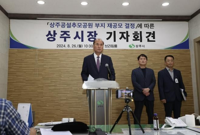 강영석 시장은 26일 오전 10시 30분 상주시청 브리핑룸에서 기자회견을 갖고 상주공설추모공원(이하 추모공원) 부지 재공모 결정을 시민에게 발표했다.
