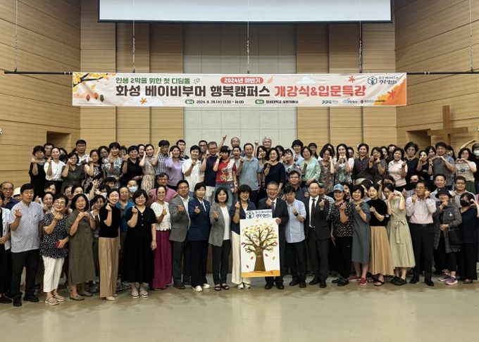 (아름다운교육신문) 화성시는 28일 협성대학교 웨슬리관에서 ‘화성 베이비부머 행복캠퍼스’ 2024년 하반기 개강식을 가졌다.