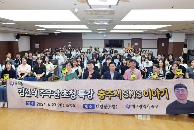 (아름다운교육신문) 대구 중구는 27일 구청 대강당에서 직원 200여 명을 대상으로 충주시 공식 유튜브 ‘충TV’ 운영자인 김선태 주무관을 초청해 홍보역량강화 특강을 진행했다.