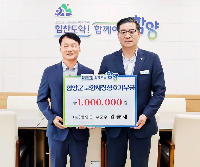 (아름다운교육신문) 경남 함양군 부군수를 역임했던 강승제 전 부군수가 27일 오후 함양군청을 방문하여 함양군 발전을 염원하며 고향사랑기부제 100만 원을 기탁했다.