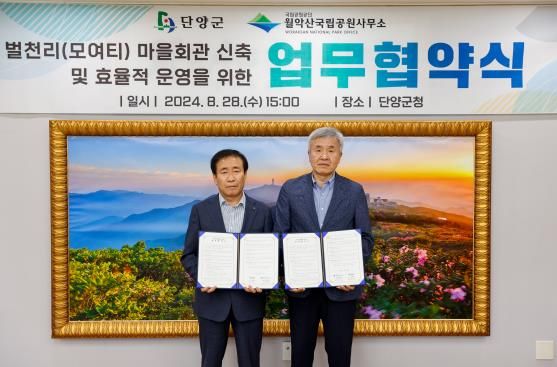 (아름다운교육신문) 단양군과 월악산국립공원사무소는 지난 28일 ‘단성면 벌천리 모여티 마을회관 신축 및 활성화’를 위한 업무협약을 체결했다.