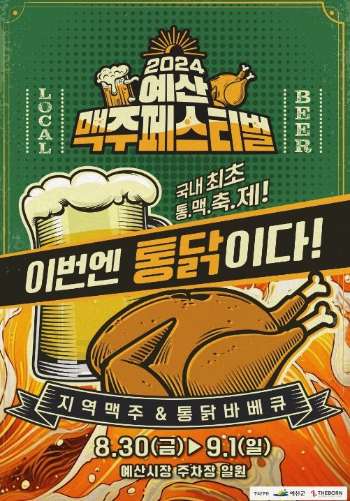 축제의 주인공인 맥주로는 예산사과 애플리어 등의 지역맥주를 비롯해 수제맥주, 메이저맥주 등이 준비됐고 안주로는 통닭 요리를 특화한 풍차바베큐, 그릴바베큐, 가마솥통닭과 함께 더 다양한 메뉴들을 선보일 예정이다.