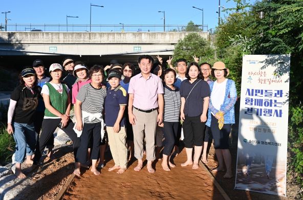 김동근 시장은 이날 시민들과 함께 황톳길을 걸으며 재정비된 구간을 점검했다.