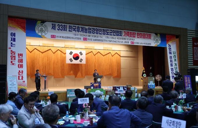 (아름다운교육신문) 청도군은 30일 국민체육센터 실내체육관에서 각 기관 단체장, 내외 귀빈, 농업경영인 회원 및 가족 등 500여 명이 참석한 가운데, 제33회 한국후계농업경영인 가족화합 한마당 대회를 개최했다.