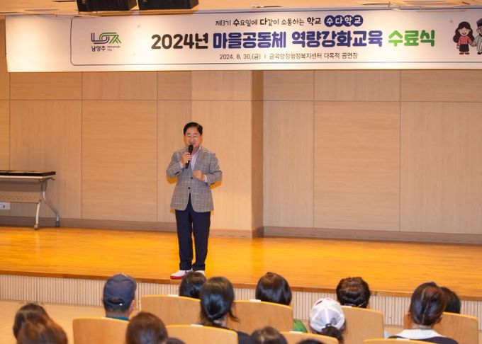 행사에 참석한 주광덕 시장은 “이번 교육 과정에서 소통을 통한 네트워크를 구축하고, 필수 역량을 강화한 마을공동체 일원들은 지역사회 발전의 밑거름이 되리라 기대한다”라며 “남양주시는 다산 정약용 선생의 위민·공렴이라는 핵심 가치로 공동체와 함께 슈퍼성장을 이뤄내겠다.”라고 말했다.